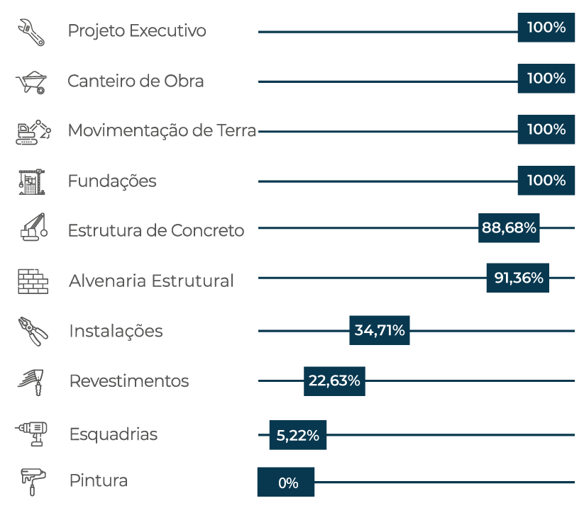 EVOLUÇÃO DE OBRA - 45,57%